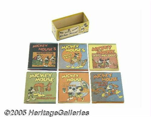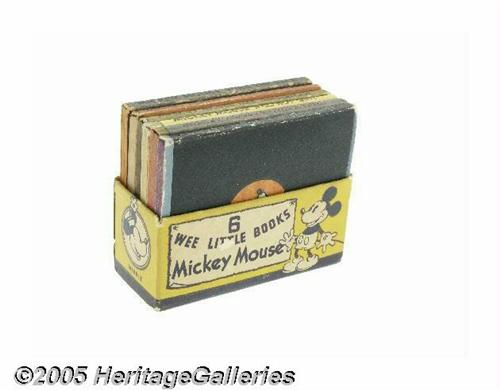<B>Big Little Book #512 Mickey Mouse Wee Little Books (Whitman, 1934) Condition:VF+.</B></I> Complete set of books in open box. Small size, softcover, 44 pages. Includes <B>Mickey Mouse and Tanglefoot</B></I>, <B>Mickey Mouse at the Carnival</B></I>, <B>Mickey Mouse Will Not Quit!</B></I>, <B>Mickey Mouse Wins the Race!</B></I>, <B>Mickey Mouse's Misfortune</B></I>, and <B>Mickey Mouse's Uphill Fight</B></I>. Overstreet 2005 VF/NM value = $500. <I>From the Larry Jacobs Collection.</B></I>