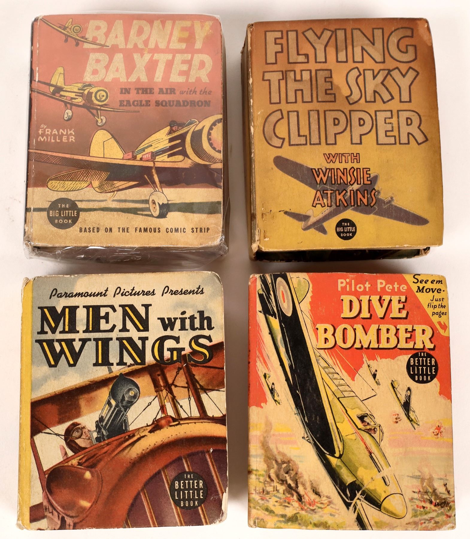 4 Big Little Books. Pilot Pete Dive Bomber, Barney Baxter in the Air with the Eagle Squadron, Men with Wings, Flying the Sky Clipper. Good to very good condition.