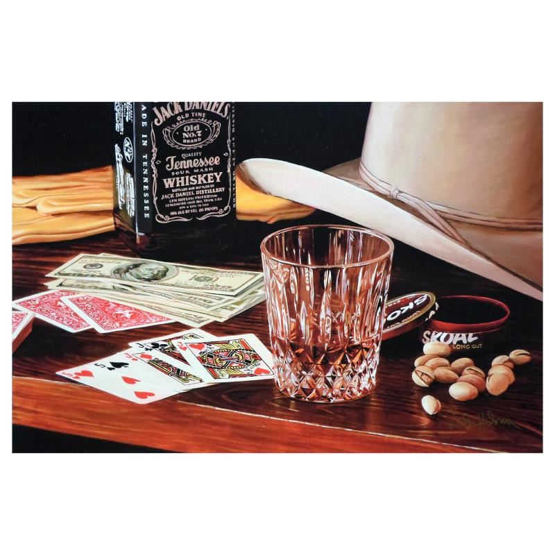"Big Poker Night" is a numbered limited edition giclee on canvas by Nobu Hairara. It comes bearing the artist's authorized signature and with a Certificate of Authenticity. Measures approximately 11"x16.5" (image).