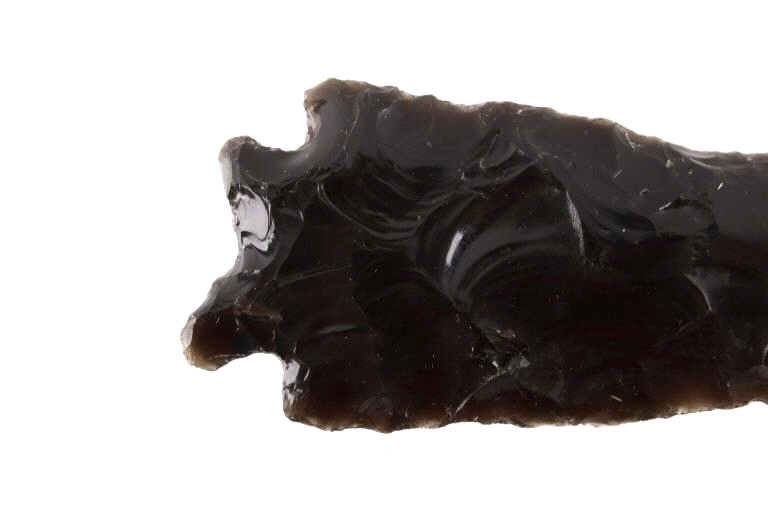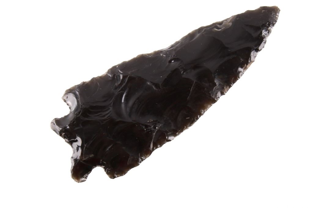 Featured in this lot is this Big Sandy contracting base point dated from the Early Archaic Period and circa 10,000 - 8,000 B.P. The point is a medium bifurcated design with an elliptical cross section and a excurvate with a parallel notch and an expanding stem with is auricle in appearance. The point is knapped from an obsidian material. The condition of this point is good with no obvious signs of damage and in good overall condition. The measurements of this point are 3 3/4" x 1 1/2" x 3/8".