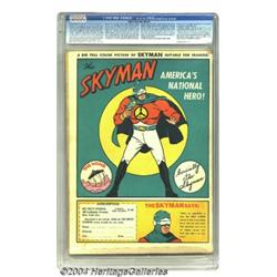 Big Shot Comics #9 (Columbia, 1941) CGC VG+ 4.5 White pages. Ogden Whitney and Fred Guardineer art. Nice, bright colors for the grade, but one-inch spine split at top keeps grade down. Only two unrestored copies certified by CGC to date. Overstreet 2003 VG 4.0 value = $88 Important notice: Heritage usually auctions material at the rate of 200-250 lots per hour. On some occasions eBay Live bid software or the Internet may not be able to keep up with the pace of the auction. We recommend placing a realistic absentee bid now as insurance to avoid disappointment. Occasionally the auctioneer may eliminate or reject an eBay Live bid, and the auctioneer may also reopen a lot after the close of the eBay live bidding (usually because we missed an audience bid), and may reject your bid even if it shows you as the winning bidder. By bidding via eBay Live, you agree that Heritage may award the lot to another bidder at its sole discretion under the circumstances described above or any other reasonable circumstances. Since eBay bids are not shown to us until we open the lot on the floor, we treat those bids just like floor bids. In most cases the floor responds before the eBay bid is presented to us, due to Internet lag time, so for consistency we have made it a policy that floor bids are always considered first over tie eBay live bids. Also please note that all Heritage lots purchased through eBay Live carry a 20% Buyer's Premium. Please make sure you read the Terms and Conditions before you bid.