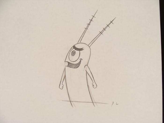 This original animation cel is from the Nickelodeon TV show SpongeBob Squarepants. The story takes place under the deep blue sea in Bikini Bottom, where SpongeBob resides. SpongeBob, who is a yellow, porous sponge, is your typical happy-go-lucky character, as he is always cheerful and enjoys making people laugh. Patrick Star, SpongeBob's neighbor who is a starfish, is your average children's show idiot, as he boasts knowing nothing and is often getting himself into ridiculous situations. Between the homes of these two lies the home of the miserable Squidward, a squid, who is known for being grouchy and playing tricks on SpongeBob and Patrick. Both SpongeBob and Squidward work at the Krusty Krab, a fast food business run by the greedy money-loving Mr. Krabs, a crab, the arch rival of the evil, possibly misunderstood, Plankton. Another neighbor, Sandy Cheeks, an athletic squirrel who normally wears an astronaut's space suit, was introduced in "Tea at the Treedome." She spends most of her time inventing and experimenting. Plankton has a big smileOriginal Production Animated Cel and Drawing Original "rough" animation drawing, in black and brown pencil, with notations in black. Overall Size of Drawing: 10 1/2" x 12 1/2" Overall Size of Cel: 10 1/2" x 12 1/2" Excellent ConditionThis is an original hand-painted cel set-up used in the production of an episode of "SpongeBob SquarePants." Each one-of-a-kind set-up represents a slight change in position of the characters. When individually photographed and projected in rapid succession, the images appear to move.