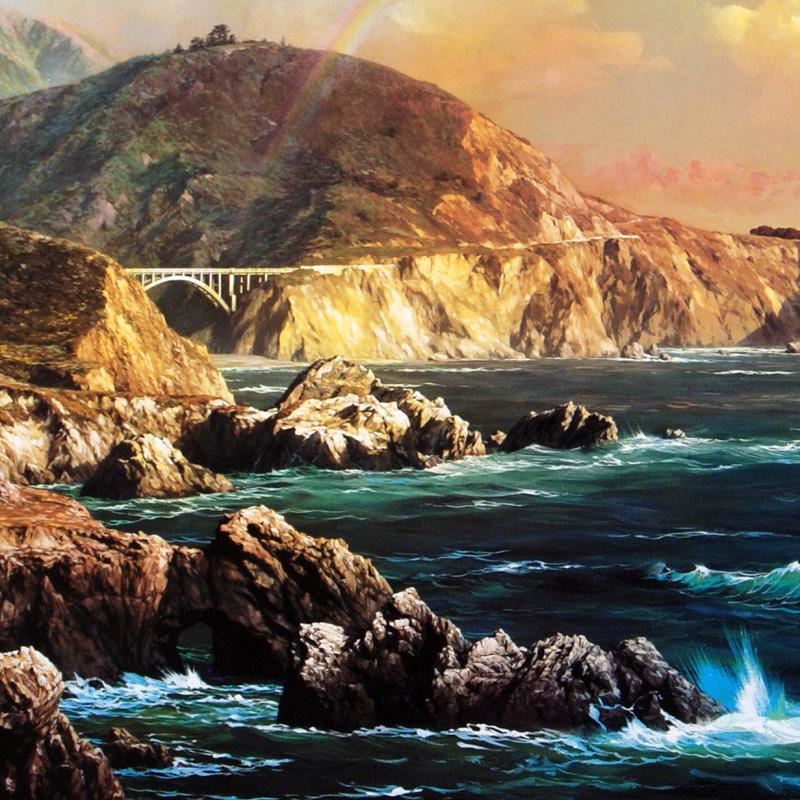 Alexander Chen creates stunningly detailed masterpieces filled with elaborate icons and a touch of fantasy. "Big Sur" is a limited edition offset lithograph on paper by Alexander Chen, numbered and hand signed by the artist. Includes Certificate of Authenticity! Measures approx. 23.5" x 17.5" (with border), 21" x 15" (image).
