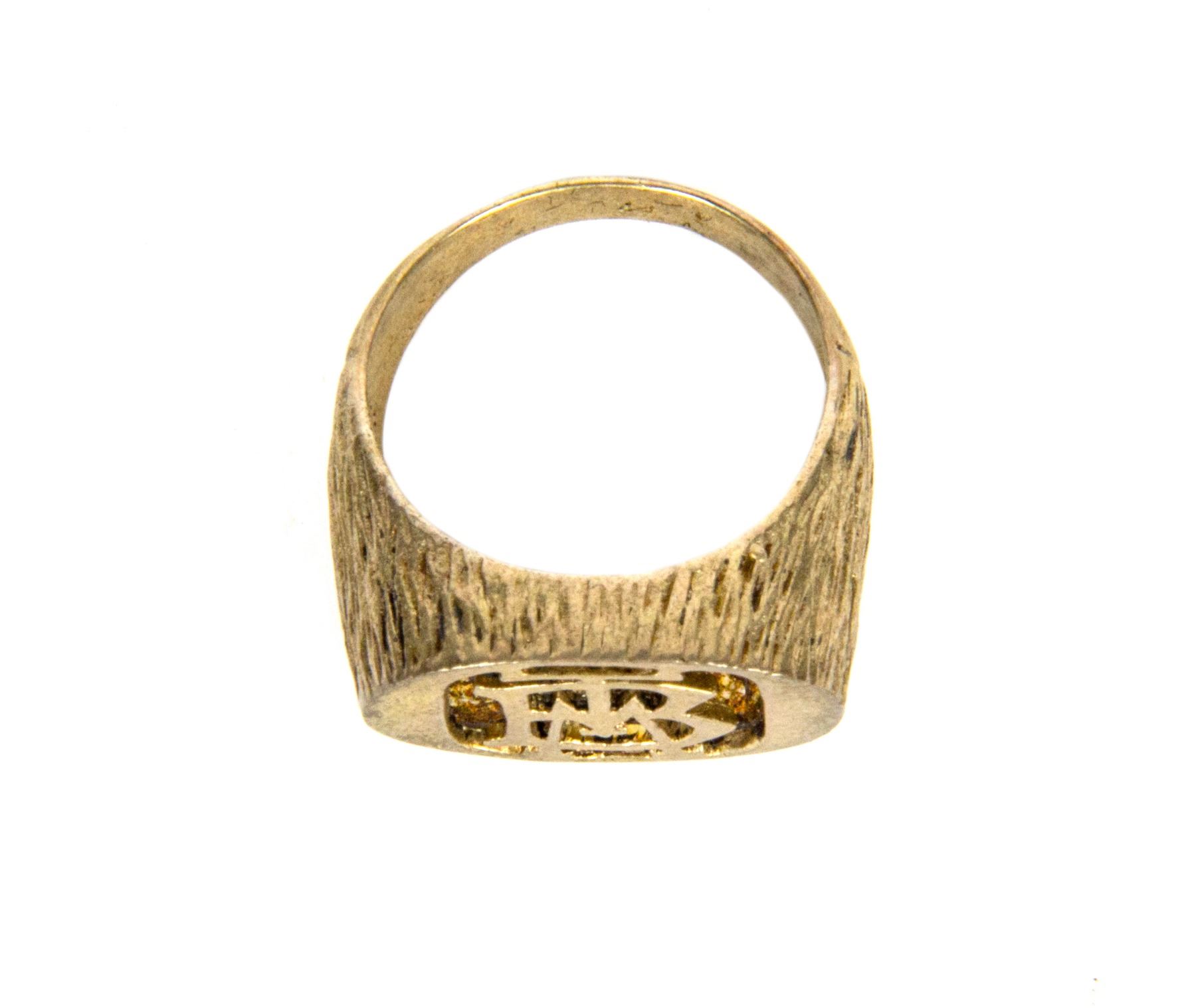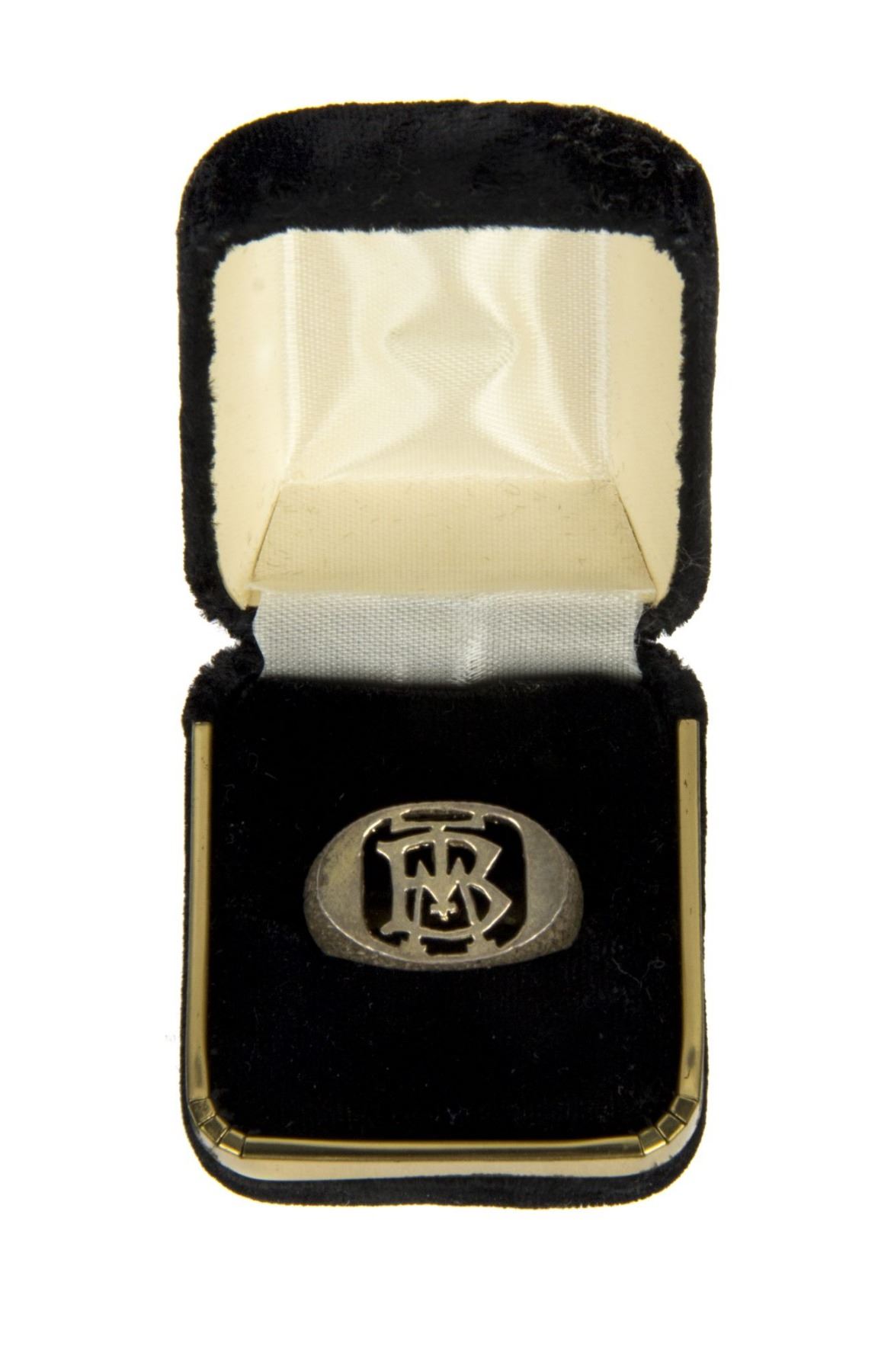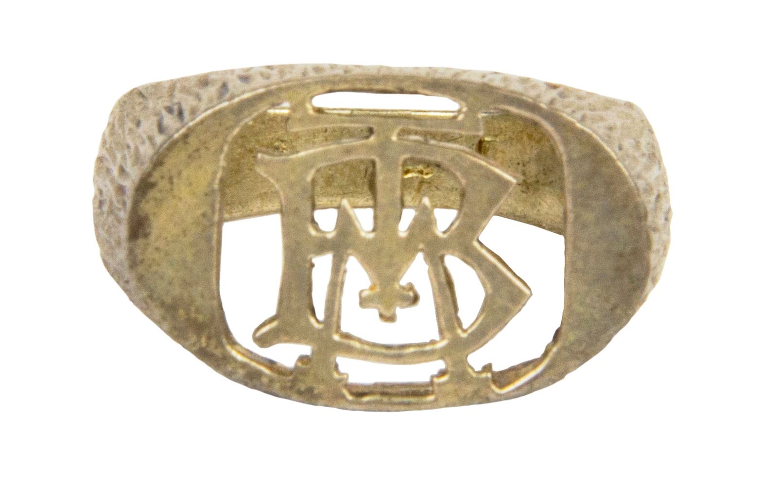 (Disneyland, c.1990s) A very rare cast member exclusive ring featuring the logo for "Big Thunder Mountain". This rare ring was only given to cast members working "Big Thunder Mountain" for a short period of time, and is a fantastic wearable item from the park's history. With a ring opening of approximately 0.75", the metal ring is in good condition with some wear from use.