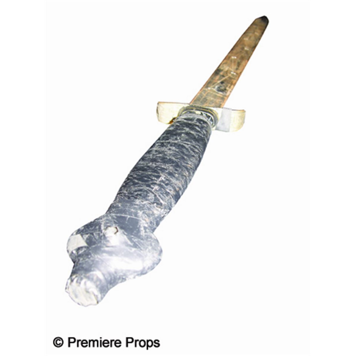 Premiere Props nor the consignor makes any warranties, expressed or implied, as to merchantability or fitness for a particular purpose, the correctness of the catalogue or other description of the physical condition, size, quality, rarity, importance, medium, provenance, exhibitions, literature, historical relevance of any property, intended use, condition of the property (including any condition report), correctness of description, origin, measurement, quality, rarity, importance, exhibition, relevance, attribution, source, provenance, date, authorship, condition, culture, genuineness, value, or period of the property. Additionally, neither Premiere Props nor the consigner makes any representation or warranty, expressed or implied, as to whether the Bidder acquires any copyrights, including but not limited to any reproduction rights of any property, or other intellectual property (including exhibition or reproduction rights) or whether the property is subject to any limitations such as ‘droit morale’ (moral rights) or other rights affecting works of art. Premiere Props does not make any representation or warranty as to title.