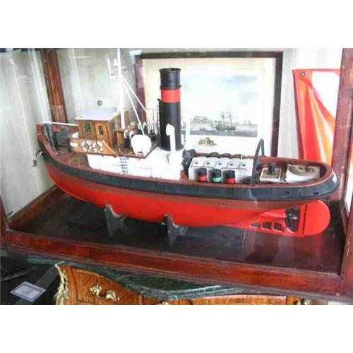 <tr><td>Title:Big Vintage Wooden Model of Tug Boat & Case</td></tr>