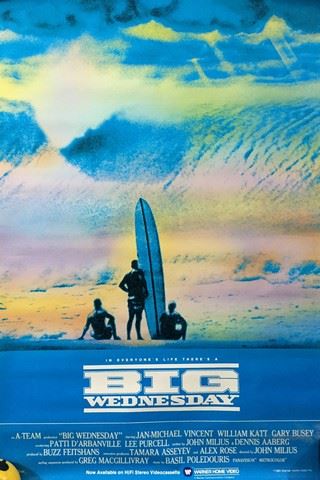 Big Wednesday (Warner Home Video, 1978). Window Card. Starring: Jan-Michael Vincent and William Katt. There is edge wear damage. Near Mint. (20.5" X 29").
