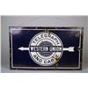 Blue and white double sided advertising sign with arrow logo and some chipping, c. 1930's Condition Fair Size 18" x 30"