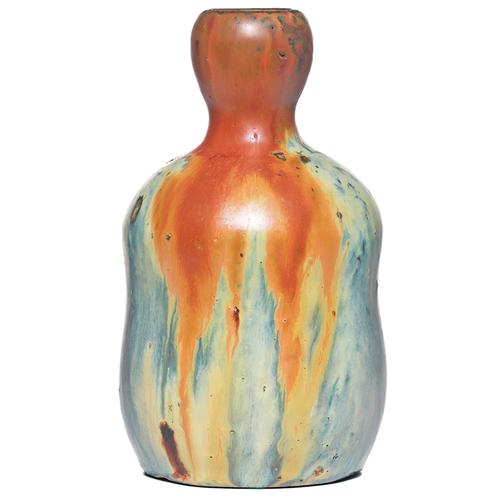 Bigot vase, double gourd form covered with a blue, tan and brown matt glaze, signed and dated,6.5in.h x