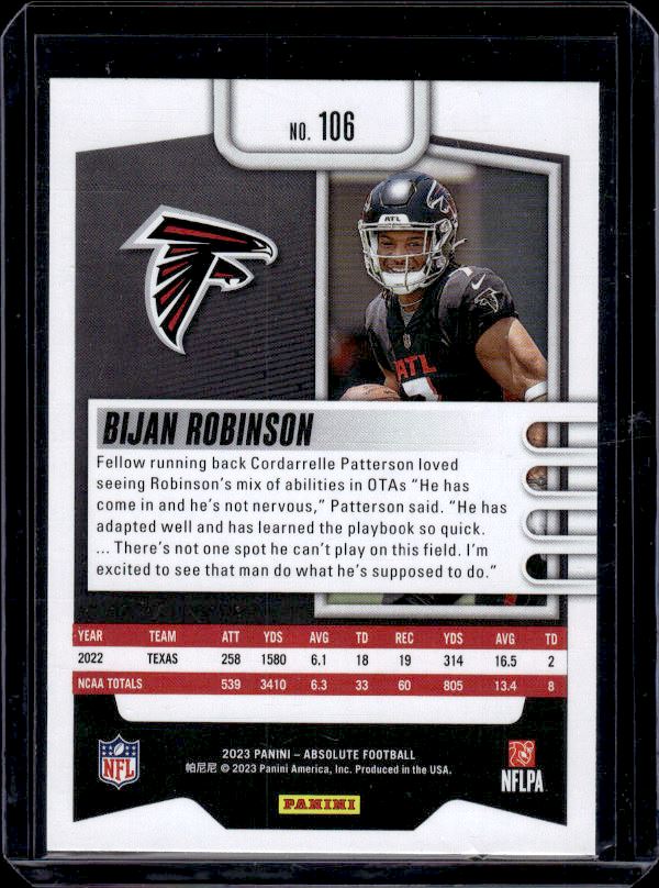 Bijan Robinson ROOKIE CARD 2023 - 2024 Panini Absolute #106
