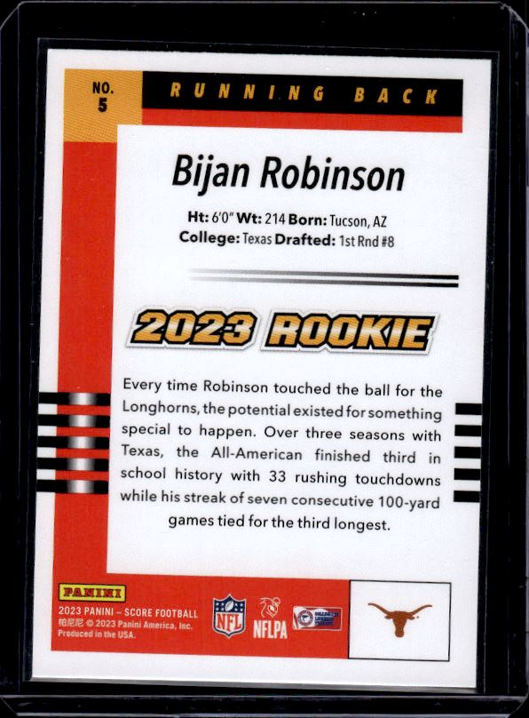 Bijan Robinson Rookie Card 2023 Panini Score #5