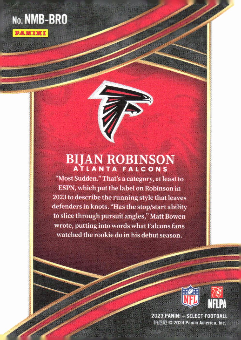 Bijan Robinson Rookie Card Numbers Insert Select Atlanta Falcons NFL