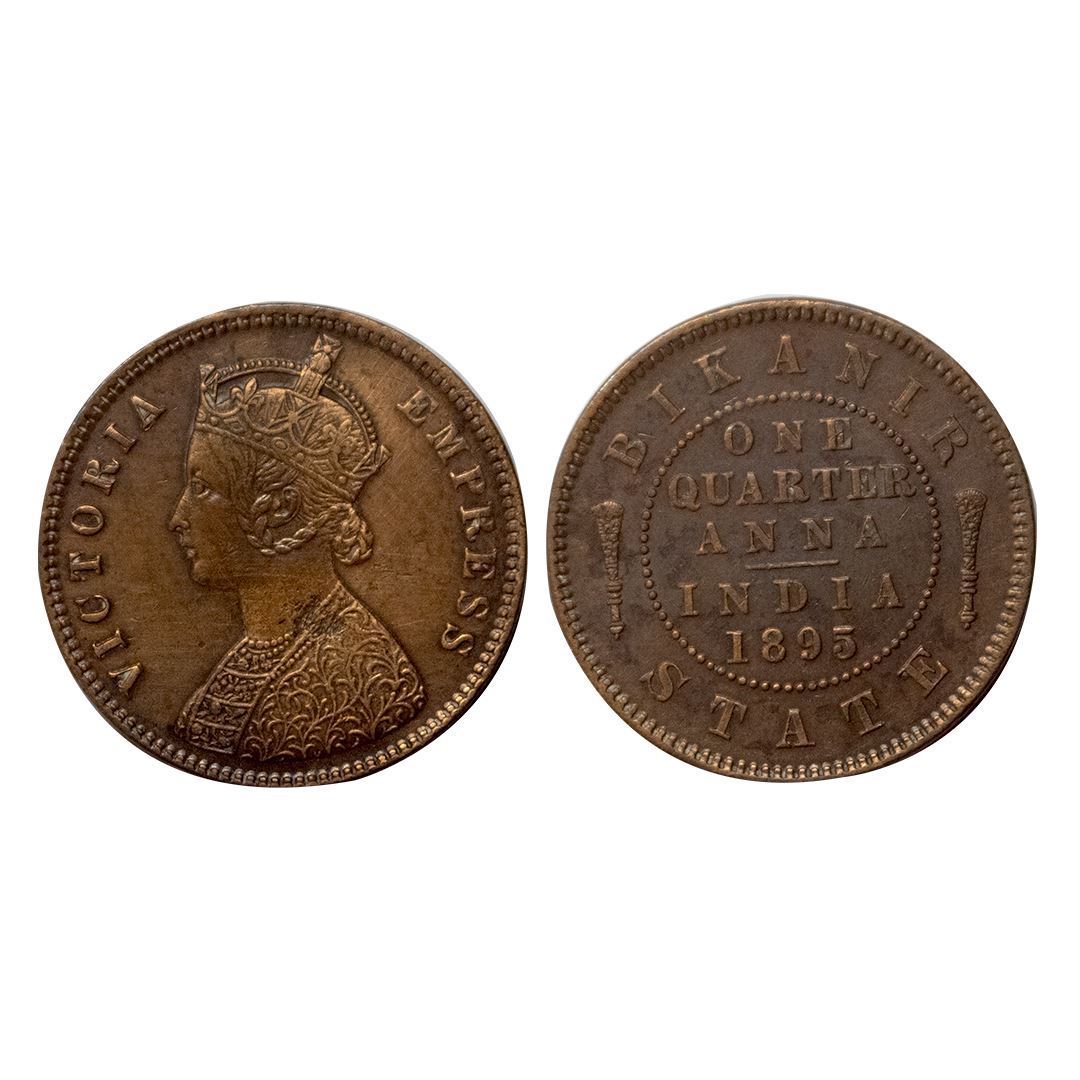 Bikaner State, Victoria Empress, One Quarter Anna, Copper, 1895