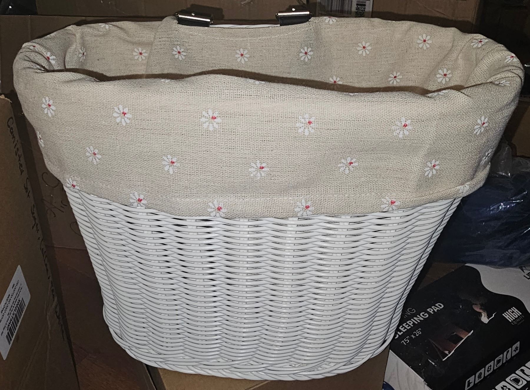 Cofit, Wicker Hand Woven, Front Handlebar White Basket, Liner Detachable, All Weather, Shelf Pull, New Condition