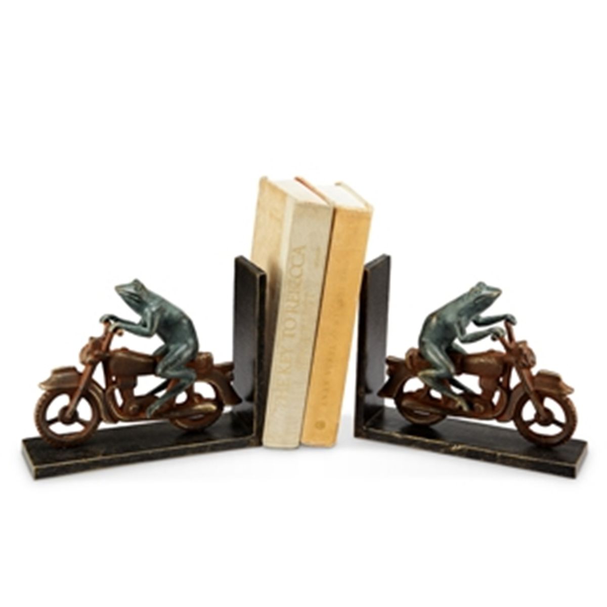 Bike Frog Bookends - 7" X 8.5" X 3" - Cast Iron & Aluminum