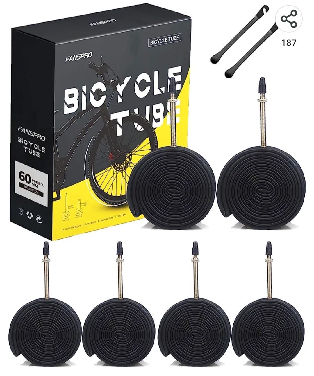 FANSPRO, 700 x 28-32c, Road Bike Inner Tubes, 60mm Presta Valve Premium Quality, Butyl Inner Tube, 6 Pack With 2 Tire Levers, Open Box, Like New Condition