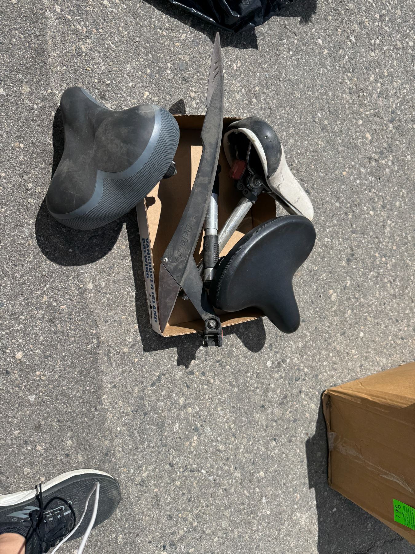 Bike fender and seat, seats, and pump