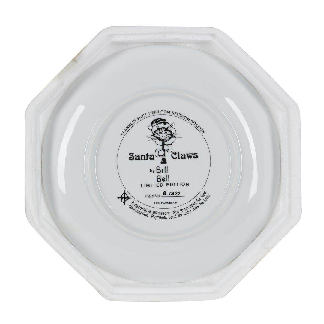 One Bill Bell "Santa Claws" plate from the Franklin Mint. The plate is numbered B1390 and is in mint condition with gold trim and vivid colors.