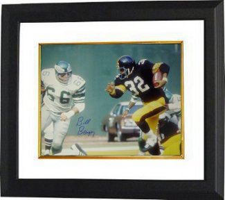 With the Eagles, Bill Bergey, a four-time All-Pro, set the NFL record for most interceptions by a linebacker and became the highest-paid defensive player in the league. He earned Eagles MVP status three times. Bergey recorded 233 tackles in a single season with the Eagles. He was a popular player who was the foundation of the "Gang Green" defense that brought the Eagles back to the playoffs in 1978, 1979, and to the Super Bowl in 1980. He retired from professional football in 1981. He was inducted into the Eagles Roll of Honor in 1988. Bill Bergey has hand signed this Philadelphia Eagles 16x20 Photo. Leaf Authentics Hologram and Certificate of Authenticity from Athlon Sports. Custom White Mat and Premium Black Frame as shown.