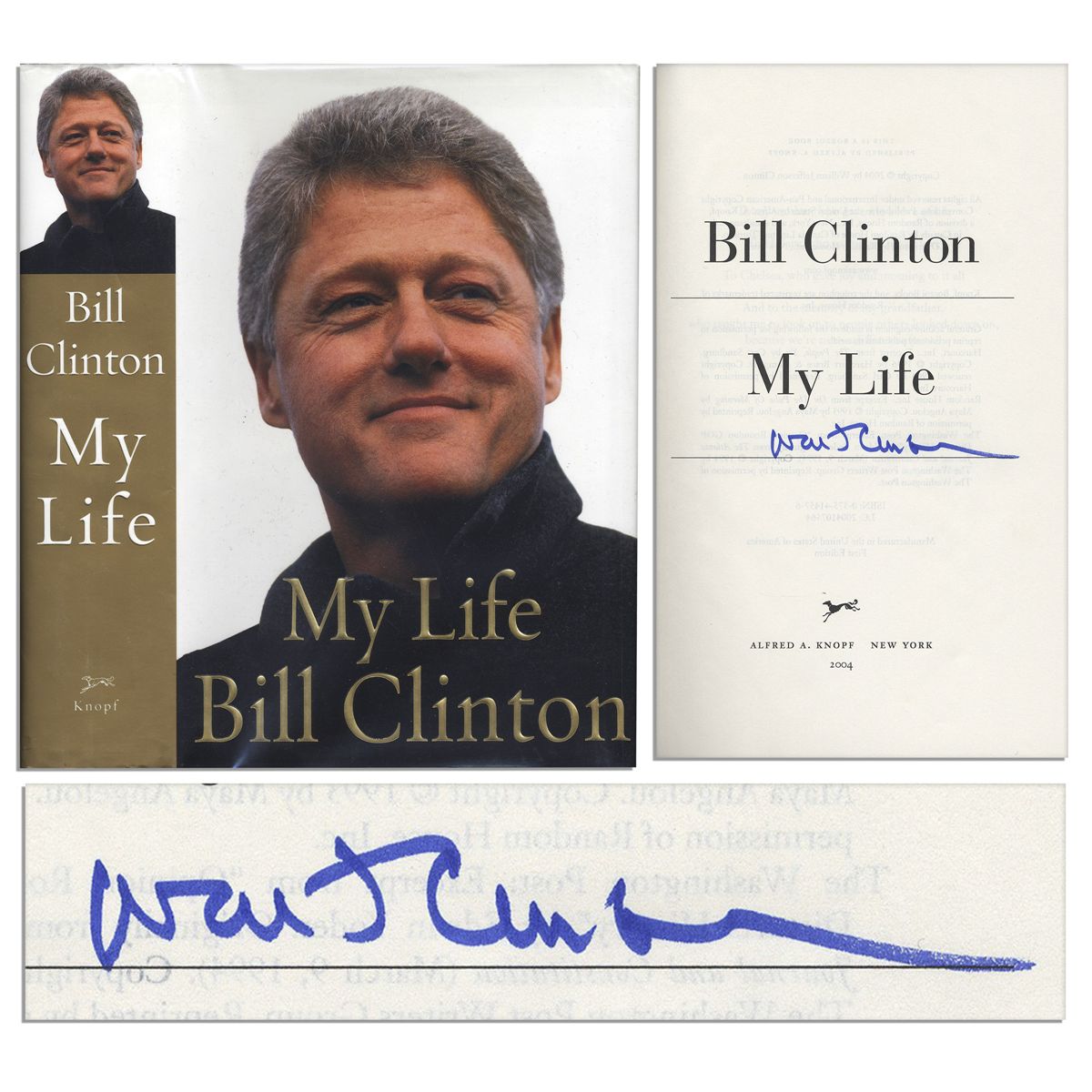 Bill Clinton ''My Life'' signed, published by Alfred A. Knopf: New York: 2004. Clinton signs the title page ''WM J Clinton'' in blue felt tip. First edition, first printing with all points present including ''failure'' instead of ''failures'' to page iv of Acknowledgements. Clinton's spellbinding account of his dramatic presidency runs 957 paginated pages not counting Acknowledgments and index. Bound in navy blue paper boards with gilt lettering, measuring 6.5'' x 9.25'' x 2.25''. In near fine condition, with near fine dustjacket.