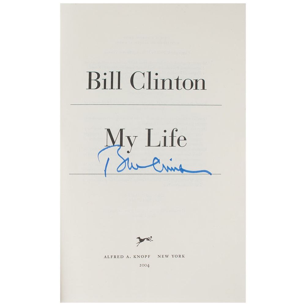 Signed book: My Life. First edition. NY: Alfred A. Knopf, 2004. Hardcover with dust jacket, 6.5 x 9.5, 957 pages. Signed on the title page in blue felt tip by Bill Clinton. In fine condition.