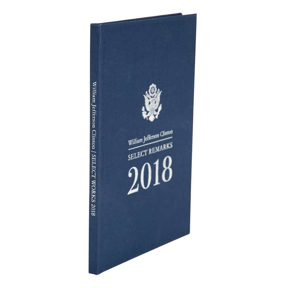Signed book: William Jefferson Clinton: Select Remarks, 2018. NY: Clinton Foundation, 2018. Hardcover, 6 x 9.25, 51 pages. Signed on the title page in blue ballpoint by Bill Clinton. In very fine condition.