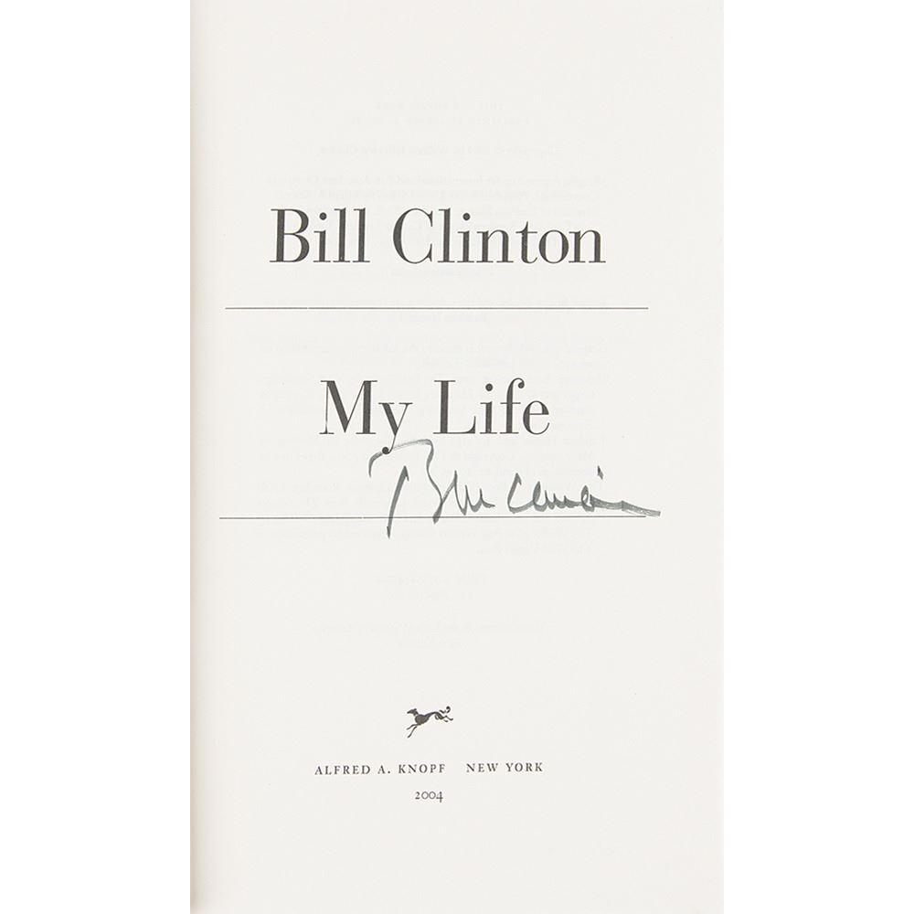 Signed book: My Life. First edition. NY: Alfred A. Knopf, 2004. Hardcover with dust jacket, 6.5 x 9.5, 957 pages. Signed on the title page in black felt tip by Bill Clinton. In fine condition. Accompanied by a flyer, receipt, and photo from Clinton's book signing at Barnes & Nobles on June 22, 2004.