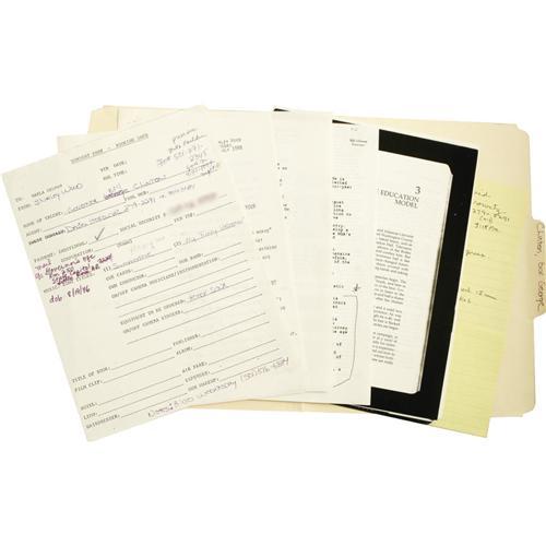 <B>Bill Clinton "Tonight Show" Dossier from Johnny Carson's Secretary.</B></I> Compiled and maintained by Johnny Carson's secretary, Shirley Wood, this was one of many files featuring info compiled on <I>Tonight Show</B></I> guests. This particular file was for (then) Governor of Arkansas Bill Clinton, who appeared on the show on July 28, 1988, around the time it was speculated he would seek the Democratic presidential nomination for the 1988 election. It includes a booking info sheet, transcript of the interview, fact sheet, and bio, and the folder is erroneously (and amusingly) mislabeled "Gov. George Clinton." The documents are in overall Excellent condition with mild wear.<BR><BR><b>Shipping:</b> Books & Catalogs (<a target="_blank" href="http://www.heritageauctions.com/common/shipping.php">view shipping information</a>)