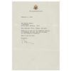 TLS signed “Bill,†one page, 7.25 x 10.5, personal letterhead, February 11, 2004. Letter to the Osborne family in Little Rock, in part: "Thank you so much for the wonderful bottles of champagne you sent over the holidays. You are always so thoughtful." In fine condition, with several small pieces of adhesive on the back (and one piece at lower right corner), resulting in some show-through. Accompanied by the original mailing envelope bearing a pre-printed free frank.