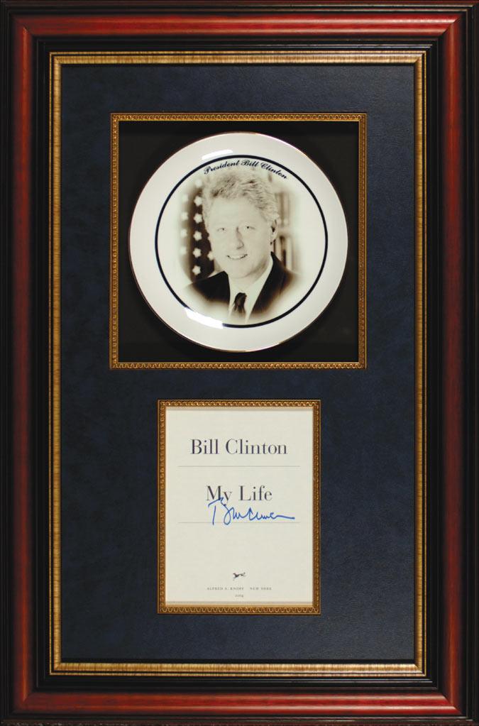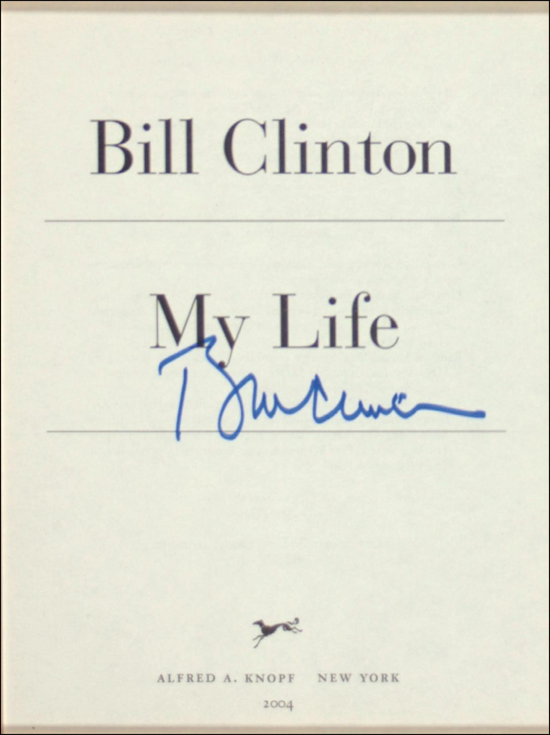 Title page from My Life, 5.5 x 7.25, signed in blue felt tip. Archivally shadow box framed with a commemorative portrait plate, to an overall size of 18 x 27. In very fine condition. Oversized.