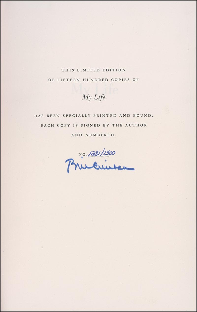 Signed book: My Life. Limited edition of 1,500 copies (this copy No. 1,281). NY: Alfred A. Knopf, 2004. Hardcover with slipcase, 6.5 x 9.5, 957 pages. Signed in blue felt tip on the limitation page. In very fine condition.