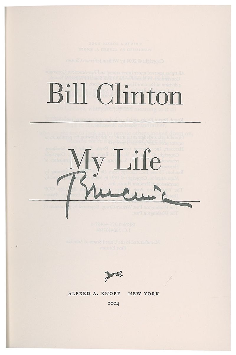 Signed book: My Life. First edition. NY: Alfred A. Knopf, 2004. Hardcover with dust jacket, 6.5 x 9.5, 957 pages. Signed on the title page in black felt tip. In very fine condition.
