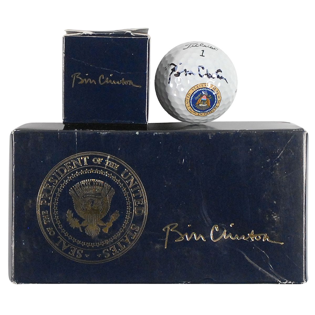 Titlest 1 golf ball bearing a presidential seal emblem and Clinton’s facsimile signature, signed in black felt tip above the seal. In fine condition. Accompanied by the original box.