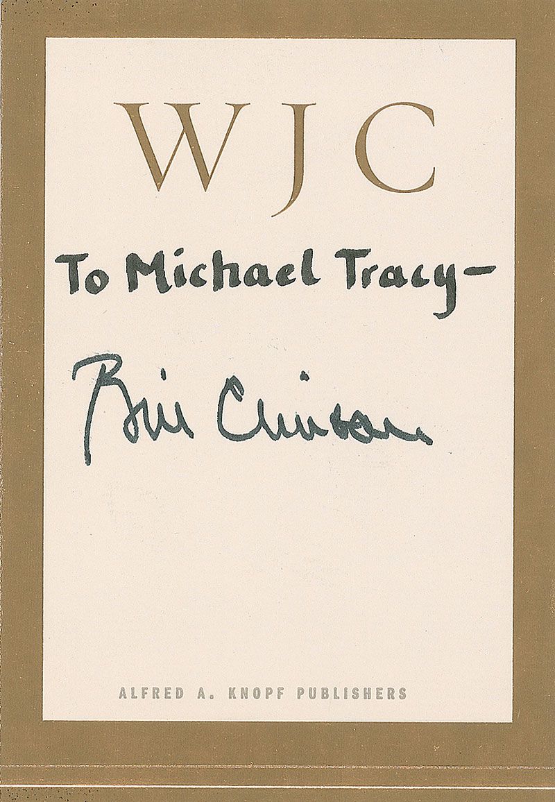 Collection of four items relating to Clinton’s administration: a WJC bookplate, signed by Clinton and inscribed in a calligrapher’s hand; printed speech given at a state dinner from Brazilian president Fernando Cardoso, signed by Cardoso; a color photo of Maya Angelou reading a poem at Clinton’s inauguration, signed and inscribed by Angelou; and an original unsigned invitation to Clinton’s 1997 inaugural ball. In fine condition.