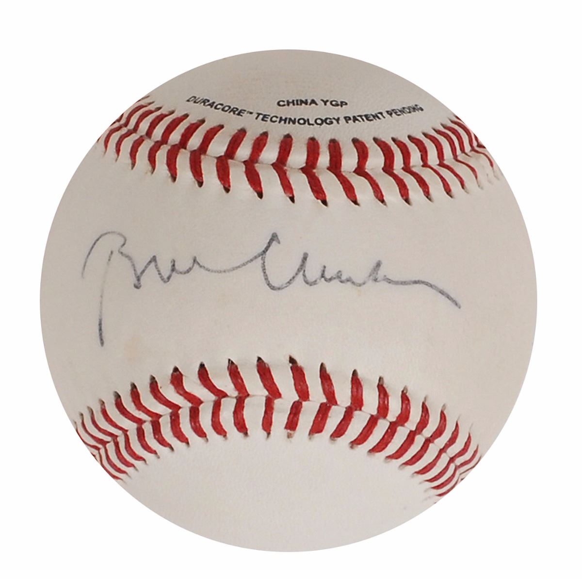 Official Wilson baseball signed in black ballpoint on the sweet spot. In fine condition, with trivial soiling and some fading to the first letter of the signature. Accompanied by an unsigned photo of Clinton and a printed transcript for An Evening with President William Jefferson Clinton, held at New Jersey’s State Theater on September 6, 2006, denoting the time and place the signature was obtained.