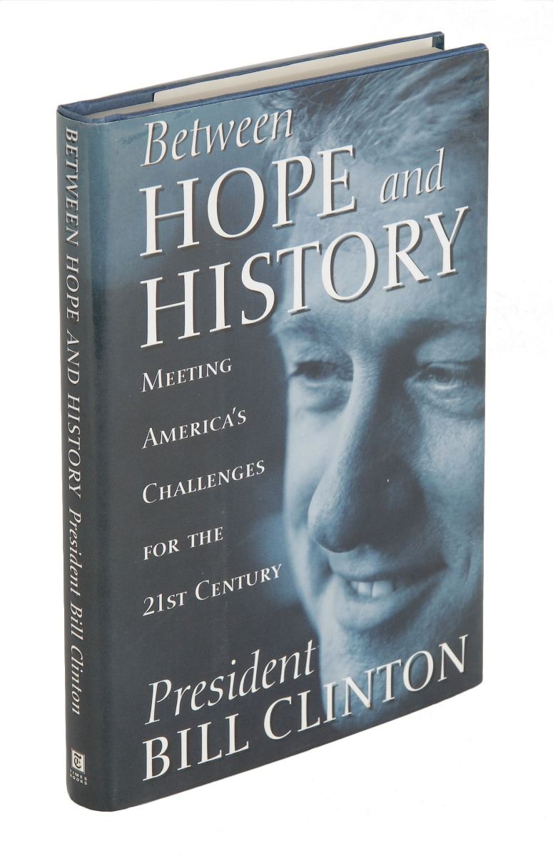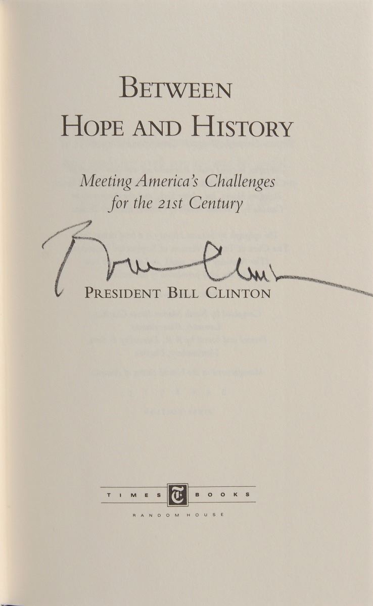 Signed book: Between Hope and History. First edition. NY: Random House, 1996. Hardcover with dust jacket, 5.5 x 8.25, 178 pages. Signed on the title page in black felt tip. In fine condition.