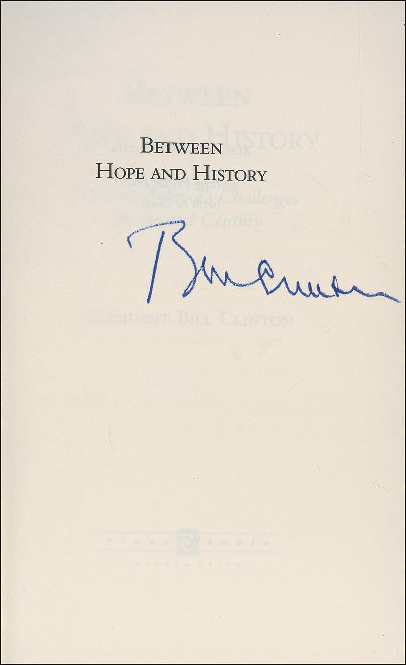 Signed book: Between Hope and History. First edition, later printing. NY: Random House, 1996. Hardcover with dustjacket, 5.5 x 8.25, 178 pages. Signed in blue ink on the half-title page. In fine condition. RRAuction COA.