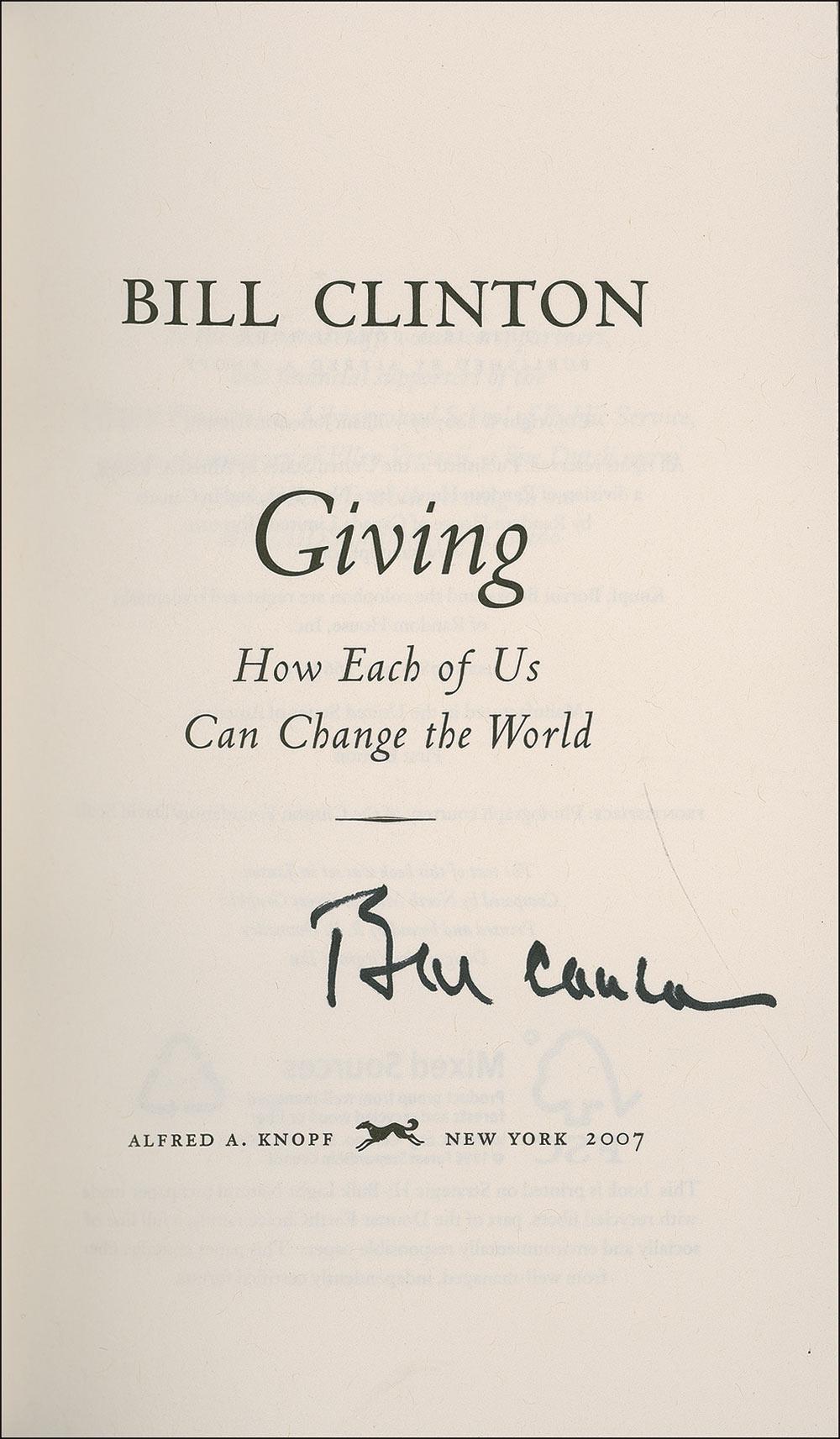 Signed book: Giving. First edition. NY: Alfred A. Knopf, 2007. Hardcover with dustjacket, 5.75 x 9.5, 240 pages. Signed on the title page in black felt tip. In fine condition, with a few edge creases to dustjacket. Pre-certified PSA/DNA and RRAuction COA.