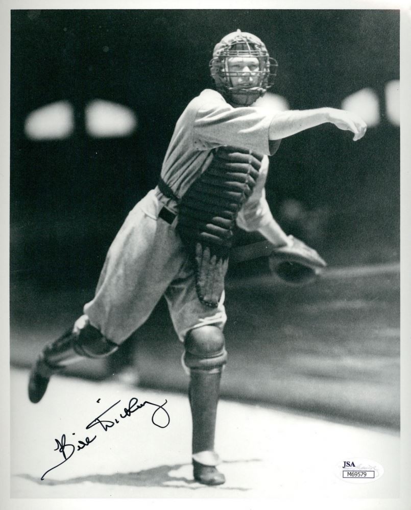 Photo measures 8" x 10" in size and has been hand-signed in black felt-tip pen by Bill Dickey (D 1993, HOF). The autograph includes an official James Spence Authentication (JSA) hologram and matching COA for authenticity purposes.