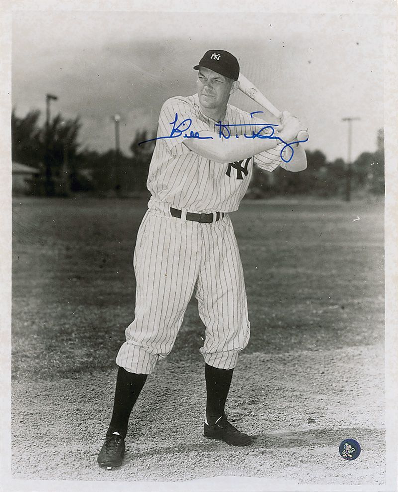 Glossy 8 x 10 photo of Dickey posing in his batting stance, signed in blue felt tip. In very good condition, with a few scattered creases, some irregular toning and soiling, light spotting to the finish, and a lightly trimmed top edge.