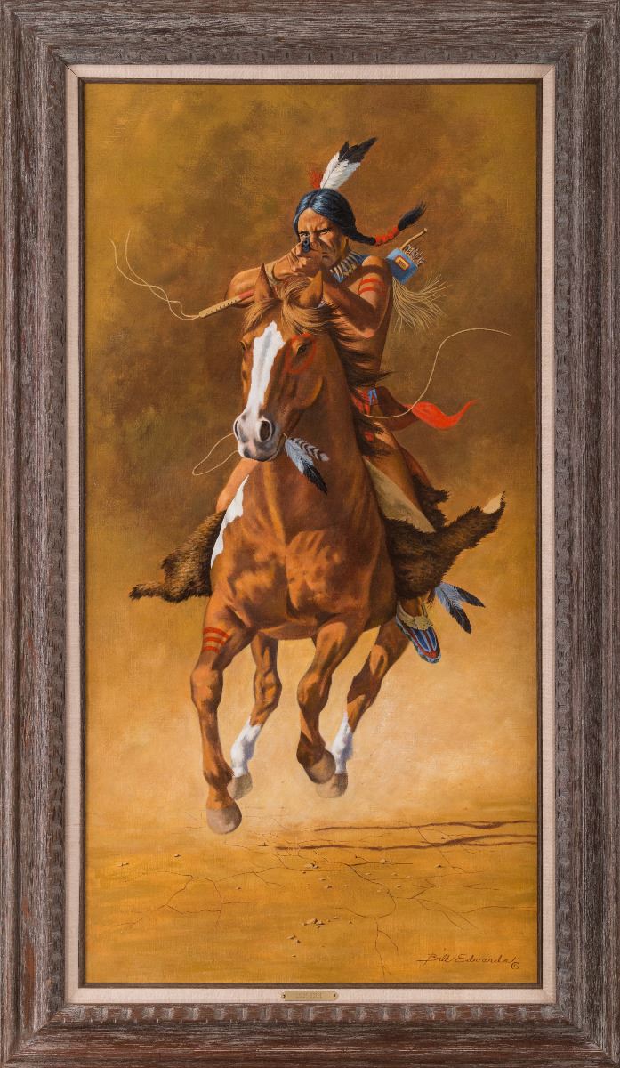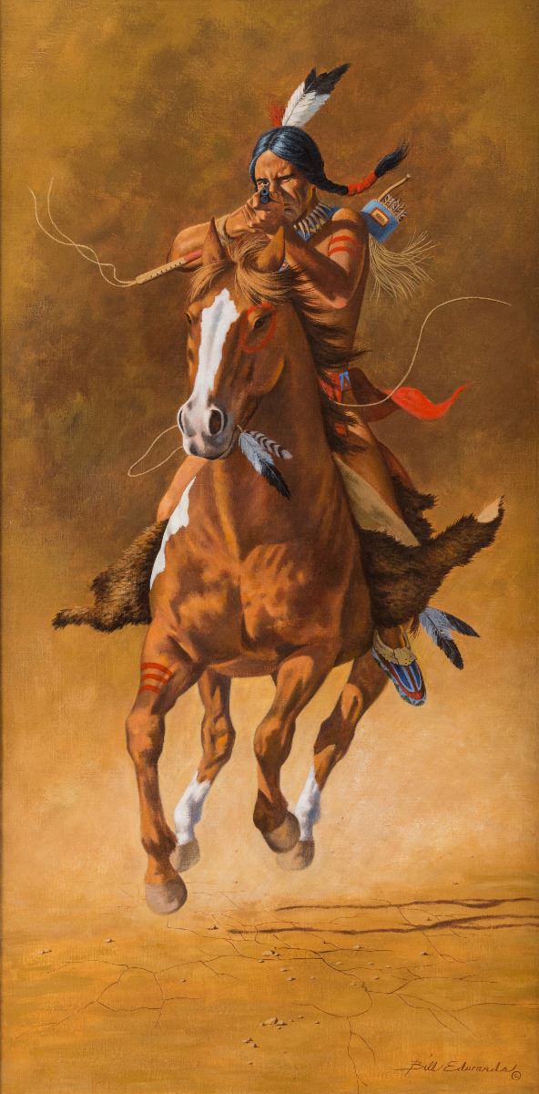 Bill Edwards (1918-1999). Crazy Horse. 48" x 24" acrylic on canvas. Signed lower right.