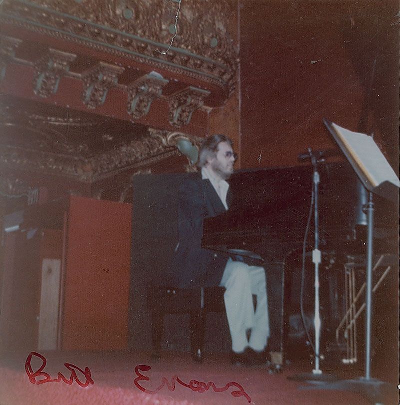 Innovative and highly regarded jazz pianist (1929–1980) who worked briefly with Miles Davis before forming his own trio in the late 1950s. Evans’s influence as a keyboard artist has been acknowledged by the likes of Herbie Hancock, Chick Corea, and Keith Jarrett. Plagued by a decades-long struggle with hepatitis and drug addition, Evans died at the age of 51. Color satin-finish 8 x 8 enlarged candid photo of Evans on stage, signed along the bottom in red felt tip. In very good condition, with signature a shade or two light, but completely legible, image a bit fuzzy, and a tear to top edge, which could be matted out. Scarce in any form, and most likely a one-of-a-kind image.