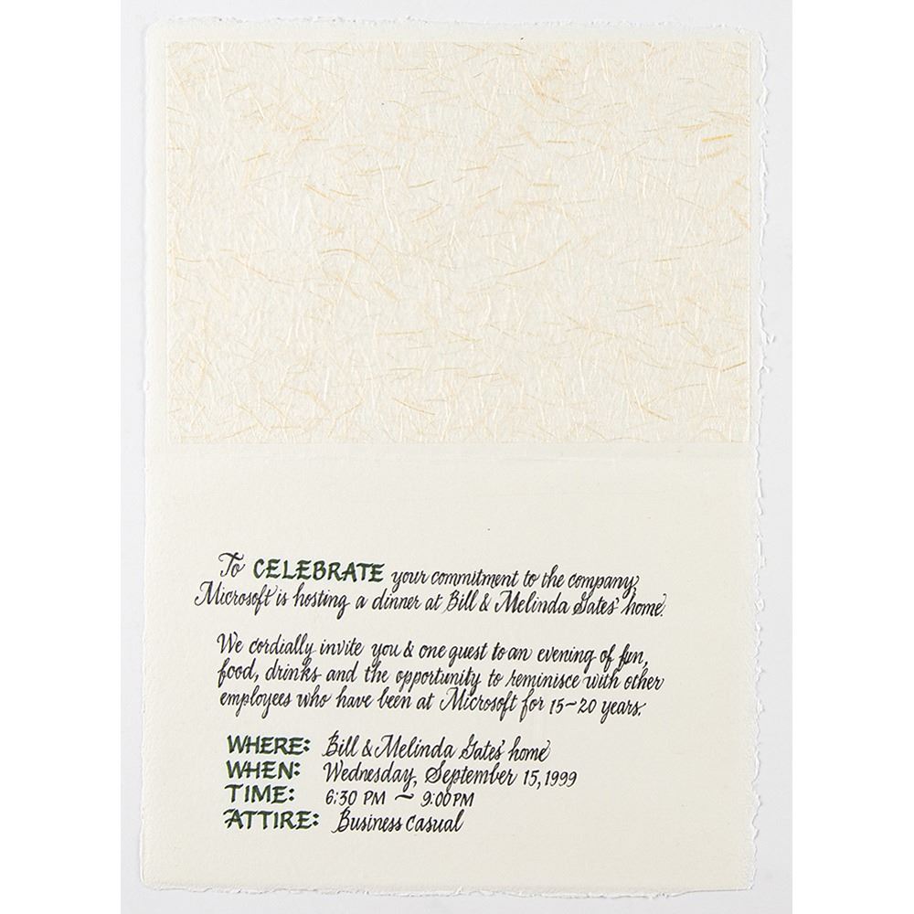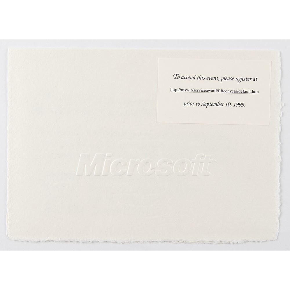 This TRS-80 Model 100 derives from the collection of a longtime member of Microsoft during the 1980s and 1990s. Provenance accompaniments include an invitation for a Microsoft Employee 15–20 Years Service Award celebration held at “Bill & Melinda Gates’ home†on September 15, 1999, and a hardcover first edition, first printing of Inside Out: Microsoft—In Our Own Words, published by Warner Books in September 2000.