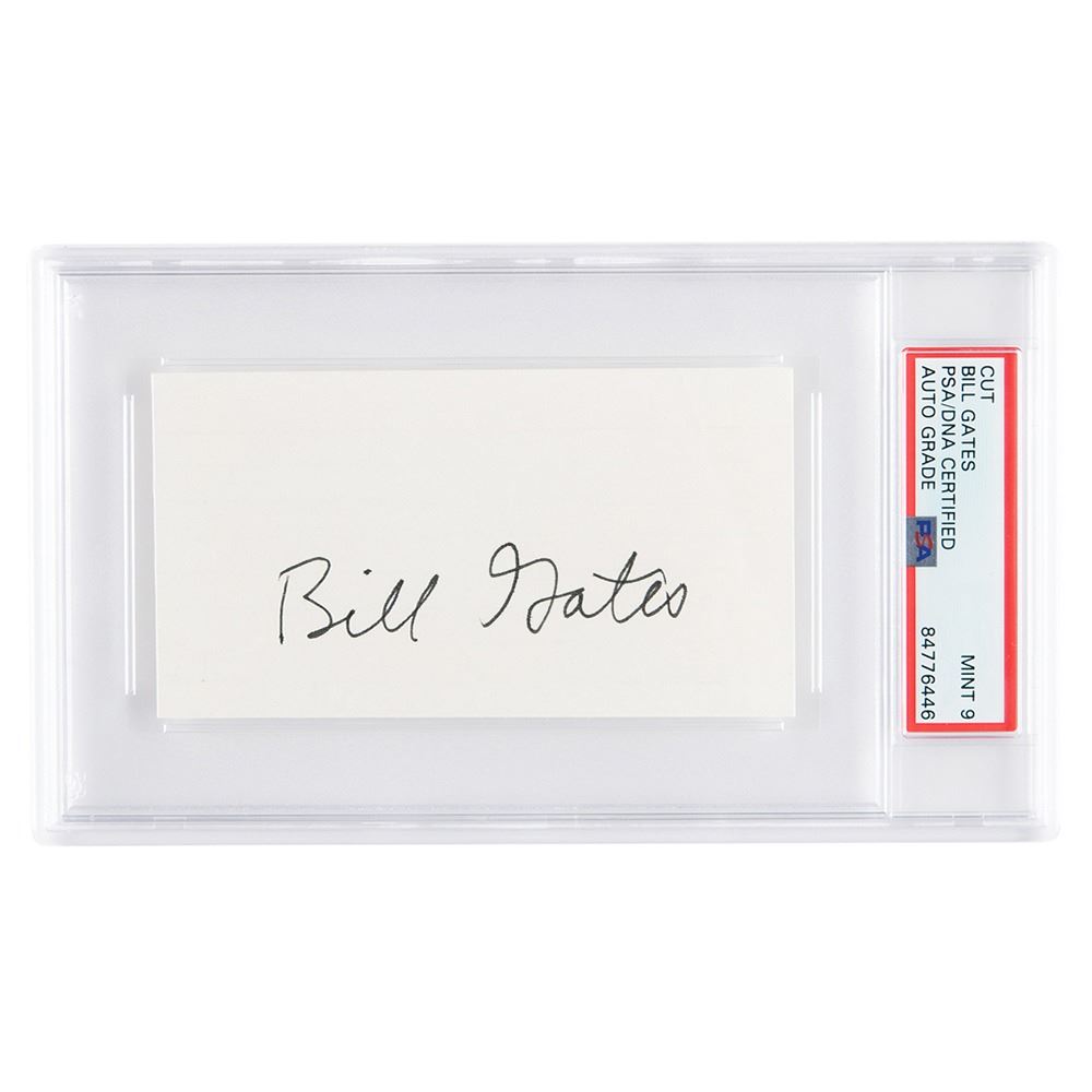 Ink signature, "Bill Gates,& rdquo; on an off-white 4.5 x 2.5 card. In very fine condition. Encapsulated and graded by PSA/DNA as "MINT 9.& rdquo;