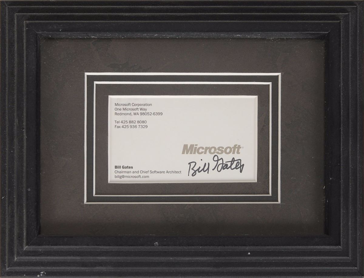 Co-founder of Microsoft considered one of the wealthiest people in the world (born 1955). Original 3.5 x 2 Microsoft business card naming Gates as “Chairman and Chief Software Architect,” signed in black felt tip, “Bill Gates.” Triple-matted and framed to an overall size of 9 x 7. In fine condition.
