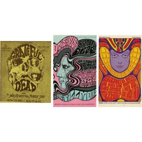 <B>Bill Graham Postcard Group (1966-69).</B></I> The Grateful Dead is prominently featured in this group of Fillmore/Winterland postcards: BG-32 Grateful Dead (VG+); BG-38 Grateful Dead/James Cotton (VG+); BG-41 Grateful Dead/Big Mama Thornton (VG, staple holes); BG-43 Otis Redding/Grateful Dead (VG, tack holes, light crease); BG-51 Otis Rush/Grateful Dead (NM-); BG-55 Chuck Berry/Grateful Dead (Good+, 1" tear, staple damage on back); BG-62 Grateful Dead/Paupers (NM-); BG-81 Jefferson Airplane/Grateful Dead (NM-); BG-99 Doors/Chuck Berry (VG, glue residue on back); BG-134 Steppenwolf/Grateful Dead/Santana (NM-, addressed on back); BG-144 Quicksilver Messenger Service/Grateful Dead (VG+); BG-162 Grateful Dead/Pentangle (VG, addressed on back, small stains); and an unnumbered card for a Grateful Dead/New Riders of the Purple Sage 8/17/70 show (NM).<BR><BR><b>Shipping:</b> Flat Material, Small (<a target="_blank" href="http://www.heritageauctions.com/common/shipping.php">view shipping information</a>)