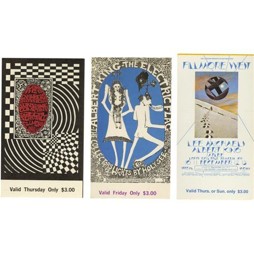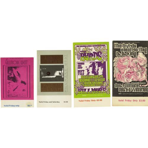 <B>Bill Graham Presents Unused Concert Ticket Group (BIll Graham, 1967-70)</B></I> This diverse group of Fillmore, Fillmore West, and Winterland tickets includes a little something for everyone, from Count Basie, Charles Lloyd, and Chuck Berry to the Byrds, Poco, and Van Morrison. Lots of Blues, too: Albert King, B. B. King, Canned Heat, Paul Butterfield Blues Band, Electric Flag, even Savoy Brown. Incudes: BG-78, BG-82, BG-96, BG-102, BG-103, BG-117, BG-184, BG-212, BG-221, BG-224, BG-246, and BG-260. Condition averages from VG+ to Excellent.<BR><BR><b>Shipping:</b> Flat Material, Small (<a target="_blank" href="http://www.heritageauctions.com/common/shipping.php">view shipping information</a>)