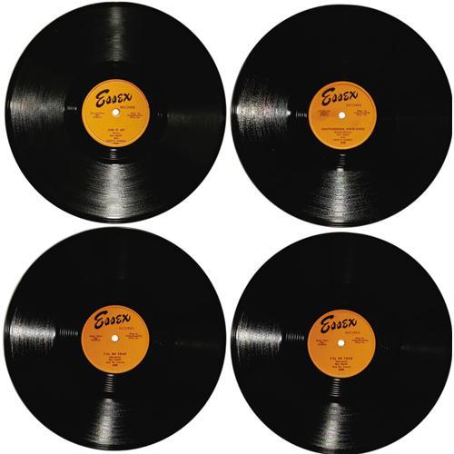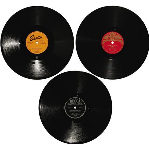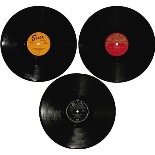 <B>Bill Haley and the Comets 78 Group of 7 (1953-56).</B></I> Before Haley signed with Decca and became a Rock icon, he and his band were honing their style on the Essex label, and five of those records are offered here. Also included are a rare UK Decca release of "Rock Around the Clock" and a US Decca record from 1956. Here's what you get with this terrific group: "Live It Up!"/ "Farewell - So Long - Good Bye" (Essex 332, 1953) in NM 8; two copies of "Ten Little Indians"/ "I'll Be True" (Essex 340, 1953), both in MT 9; "Chattanooga Choo-Choo"/ "Straight Jacket" (Essex 348, 1953) in NM 8; "Juke Box Cannon Ball"/ "Sundown Boogie" (Essex 374, 1954) in NM 8; "Rock Around The Clock"/ "Thirteen Women" (UK - Decca 5317, 1954) in EX 7; and "Hot Dog Buddy Buddy"/ "Rockin' Through The Rye" (Decca 29948, 1956) in NM 8. <I>From the GRT Collection.</B></I><BR><BR><b>Shipping:</b> Recordings (<a target="_blank" href="http://www.heritageauctions.com/common/shipping.php">view shipping information</a>)