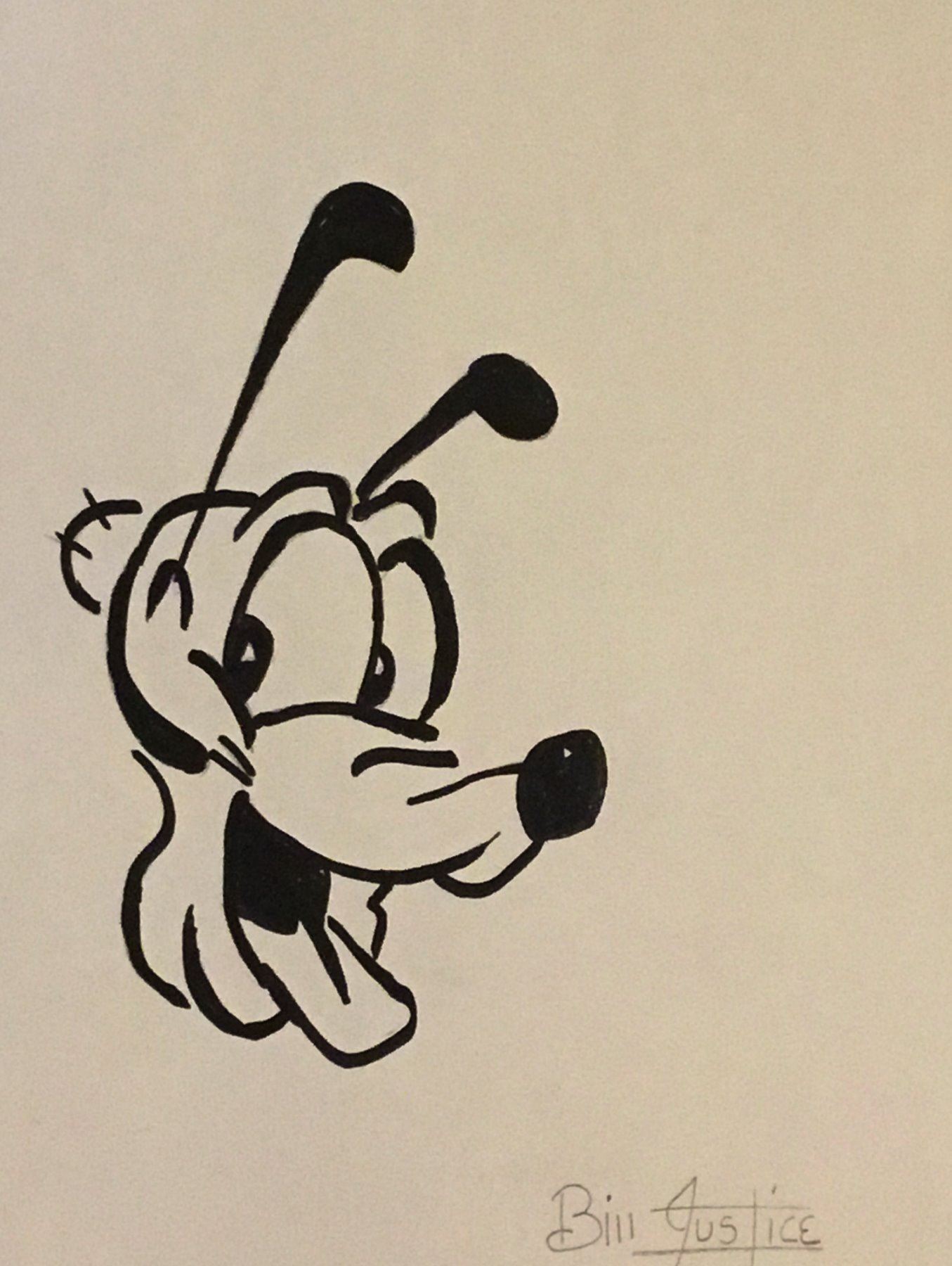William Barnard "Bill" Justice was an animator and engineer for The Walt Disney Company. He was a graduate of the Herron School of Art and Design in Indianapolis. Justice joined Walt Disney Studios as an animator in 1937 and worked on such features as Fantasia, The Three Caballeros, Alice in Wonderland, and Peter Pan. This drawn of Pluto is on an A4 piece of paper and is signed by Bill Justice. Supplied with coa.