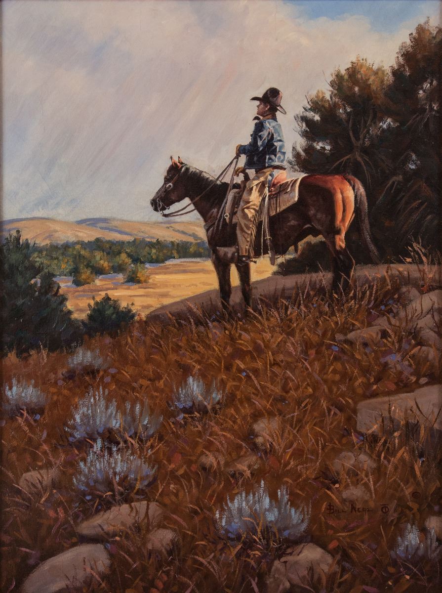 Bill Neal (20th century). Cowboy. 24" x 18" oil on canvas. Signed lower right.